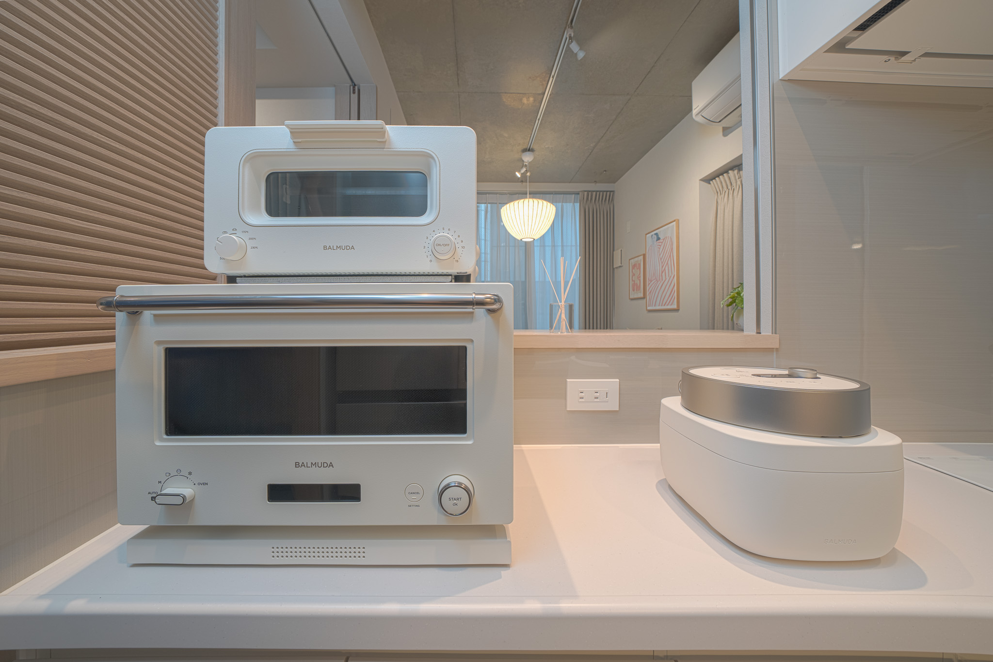Ken’s Placeとデザイナーによって丁寧にコーディネートされた空間で、Koala社製マットレス、HAYの家具、BALMUDAの家電、EMILIO ROBBAのグリーンを取り入れています。
